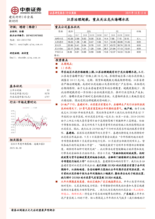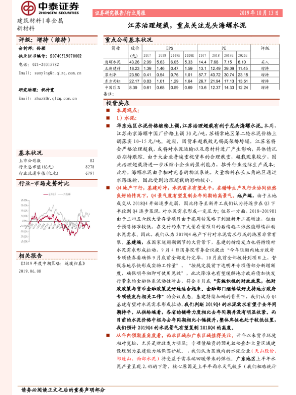 【中泰证券】【20191013】江苏治理超载,重点关注龙头海螺水泥-19页