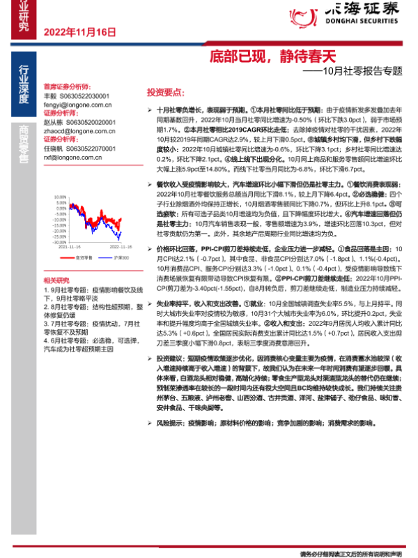 【东海证券】【20221116】商贸零售行业10月社零报告专题:底部已现,静待春天-24页
