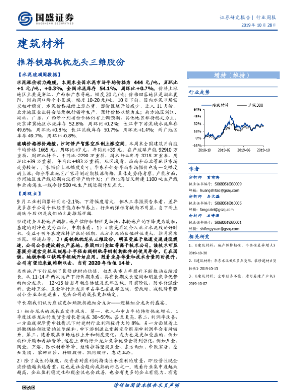 【国盛证券】【20191028】建筑材料行业周报:推荐铁路轨枕龙头三维股份-27页