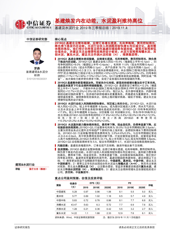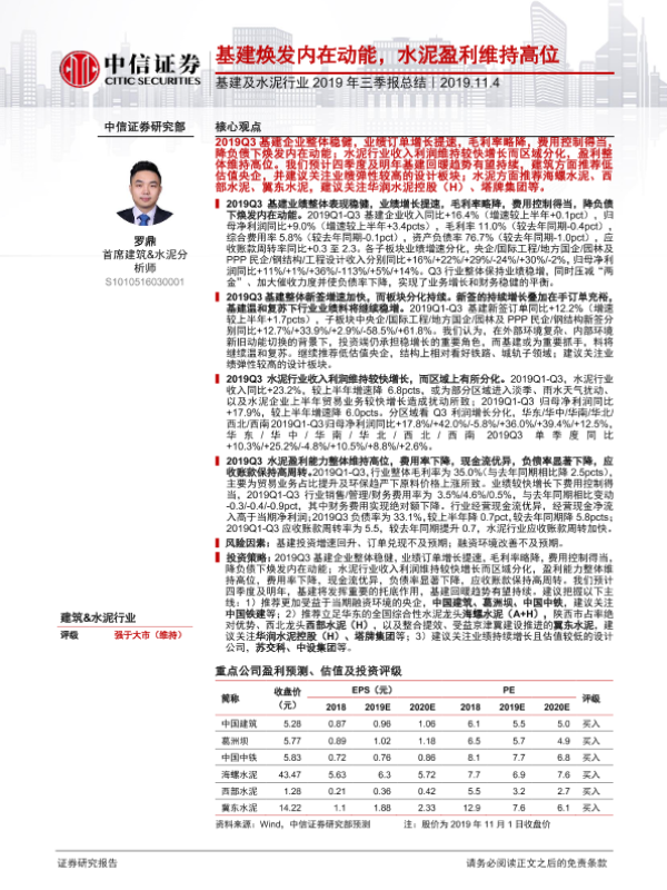 【中信证券】【20191104】基建及水泥行业2019年三季报总结-34页