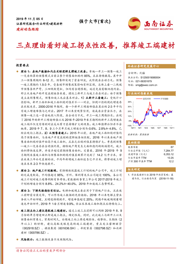 【西南证券】【20191105】建材动态跟踪:三点理由看好竣工拐点性改善,推荐竣工端建材-10页