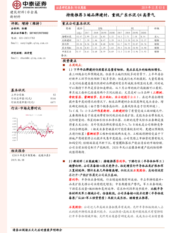 【中泰证券】【20191103】建筑材料行业周报:持续推荐B端品牌建材,重视广东水泥Q4高景气-19页