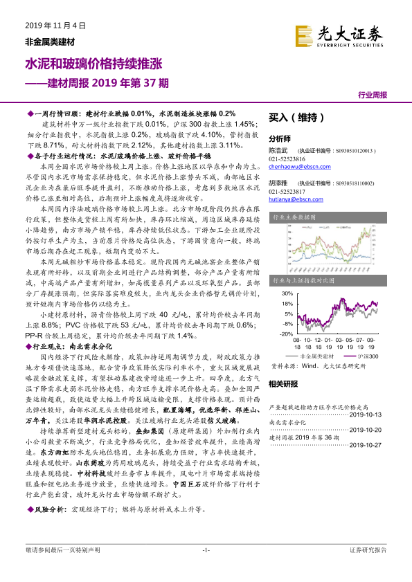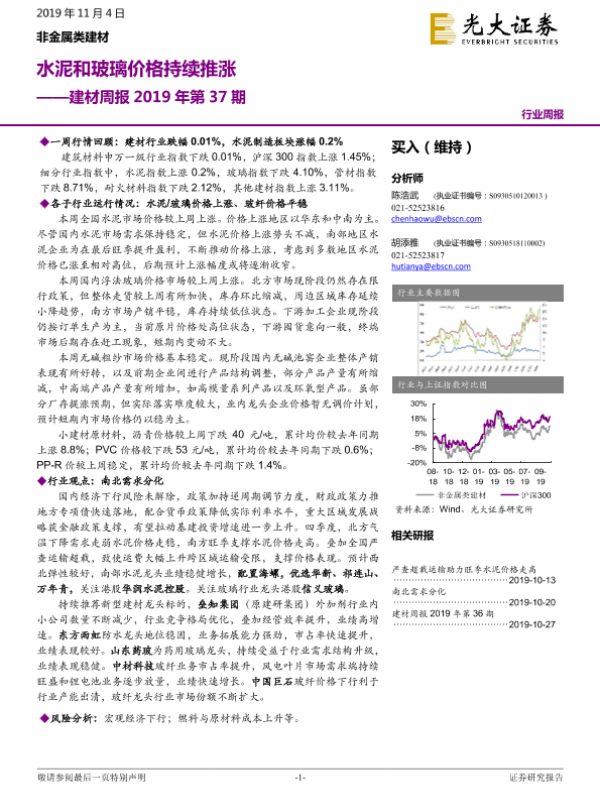 【光大证券】【20191104】建材周报2019年第37期:水泥和玻璃价格持续推涨-15页
