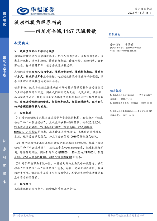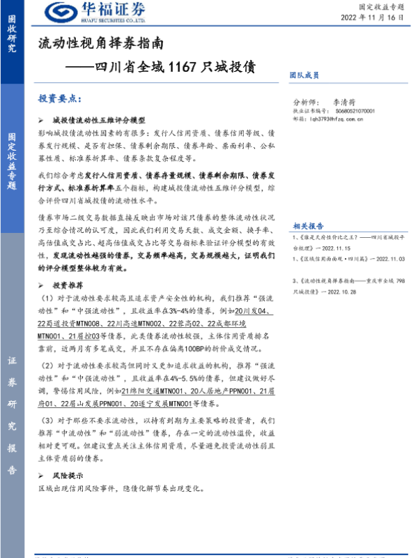 【华福证券】【20221116】四川省全域1167只城投债:流动性视角择券指南-16页