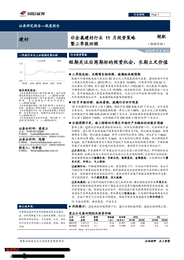 【国信证券】【20191115】非金属建材行业11月投资策略暨三季报回顾-27页