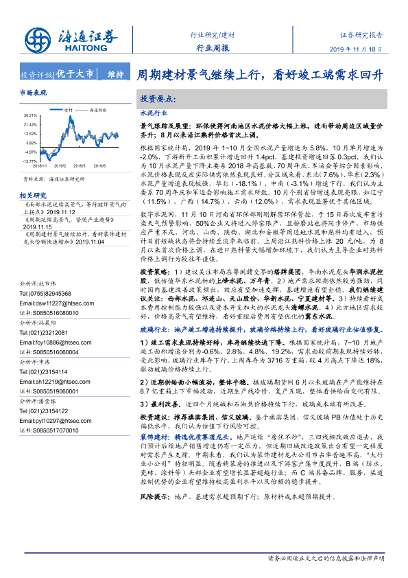 【海通证券】【20191118】周期建材景气继续上行,看好竣工端需求回升-8页