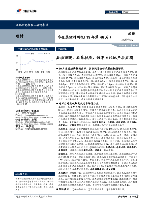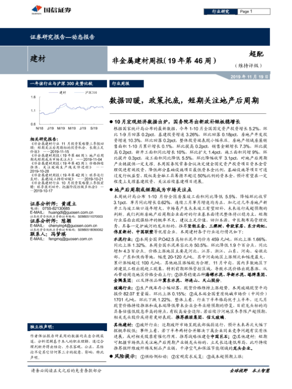 【国信证券】【20191119】非金属建材周报:数据回暖,政策托底,短期关注地产后周期-15页