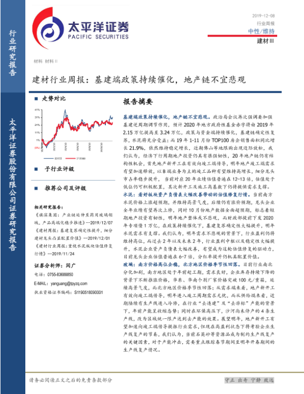 【太平洋证券】【20191208】建材行业周报:基建端政策持续催化,地产链不宜悲观-22页