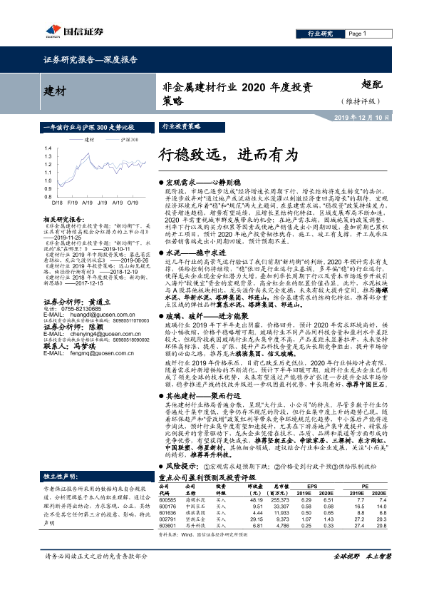 【国信证券】【20191210】非金属建材行业2020年度投资策略:行稳致远,进而有为-42页