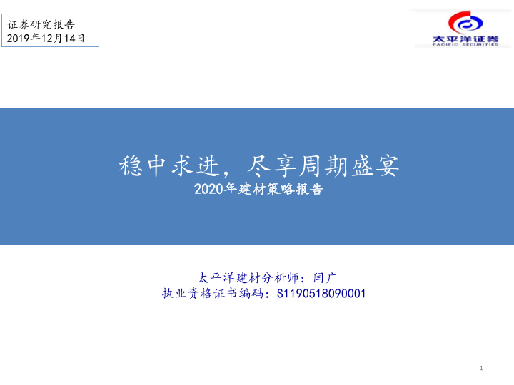 【太平洋证券】【20191214】2020年建材策略报告:稳中求进,尽享周期盛宴-54页