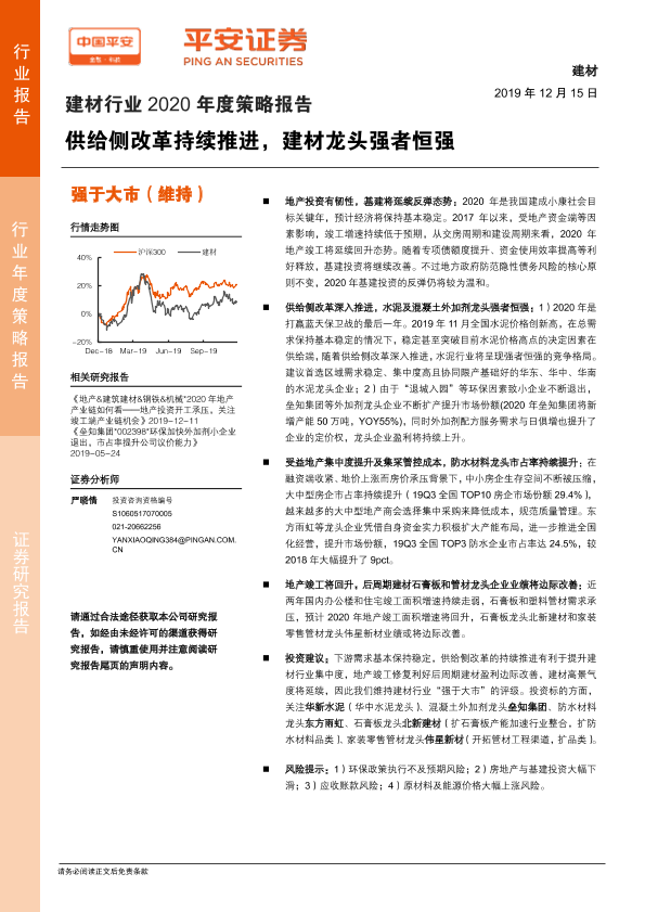 【平安证券】【20191215】建材行业2020年度策略报告:供给侧改革持续推进,建材龙头强者恒强-25页