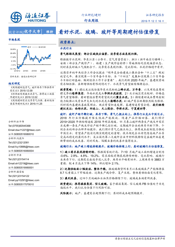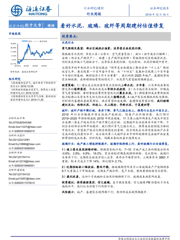 【海通证券】【20191216】建材行业周报:看好水泥、玻璃、玻纤等周期建材估值修复-8页