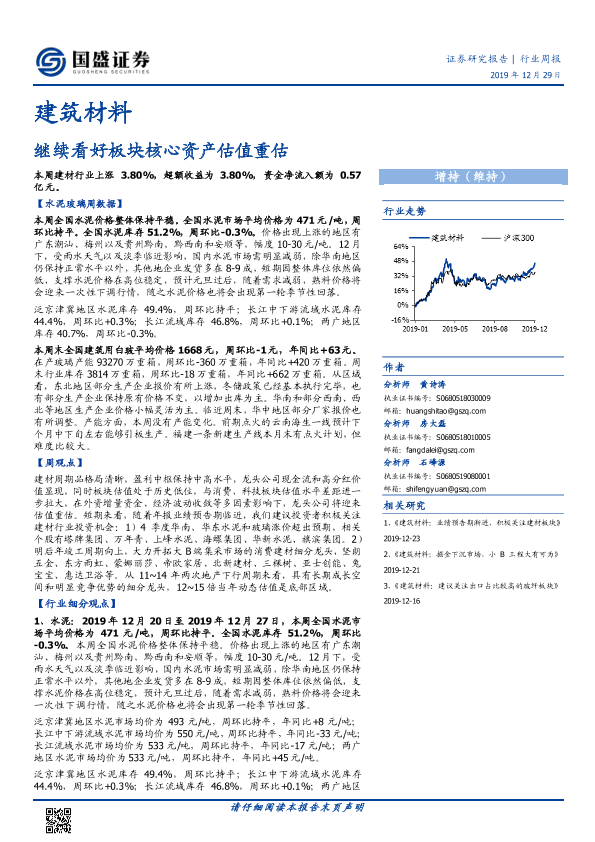 【国盛证券】【20191229】建筑材料行业周报:继续看好板块核心资产估值重估-25页