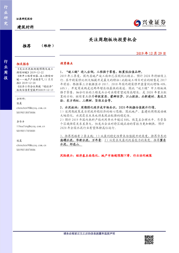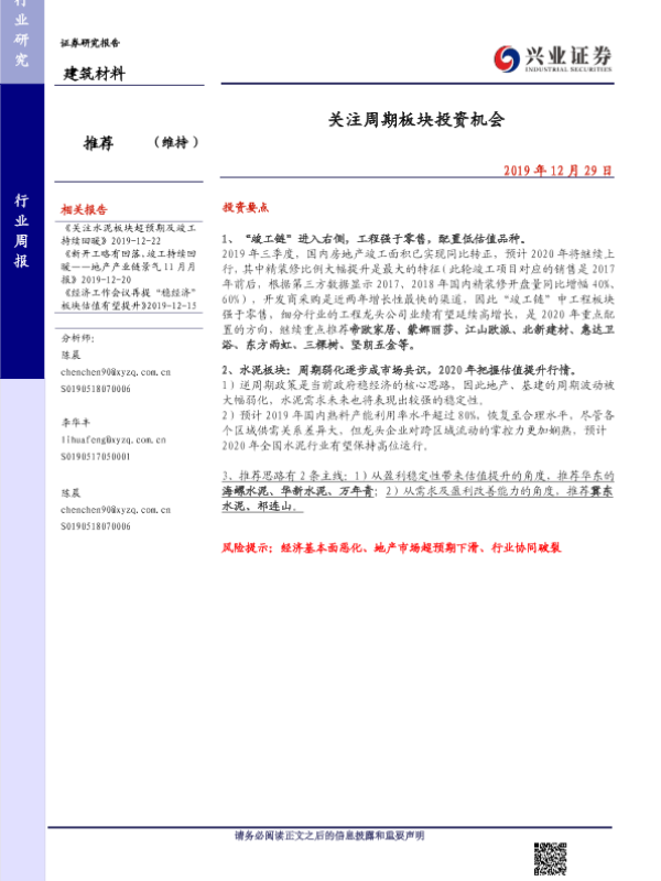 【兴业证券】【20191229】建筑材料行业周报:关注周期板块投资机会-16页