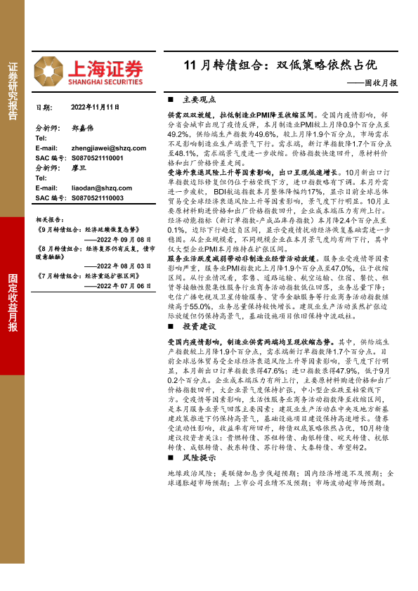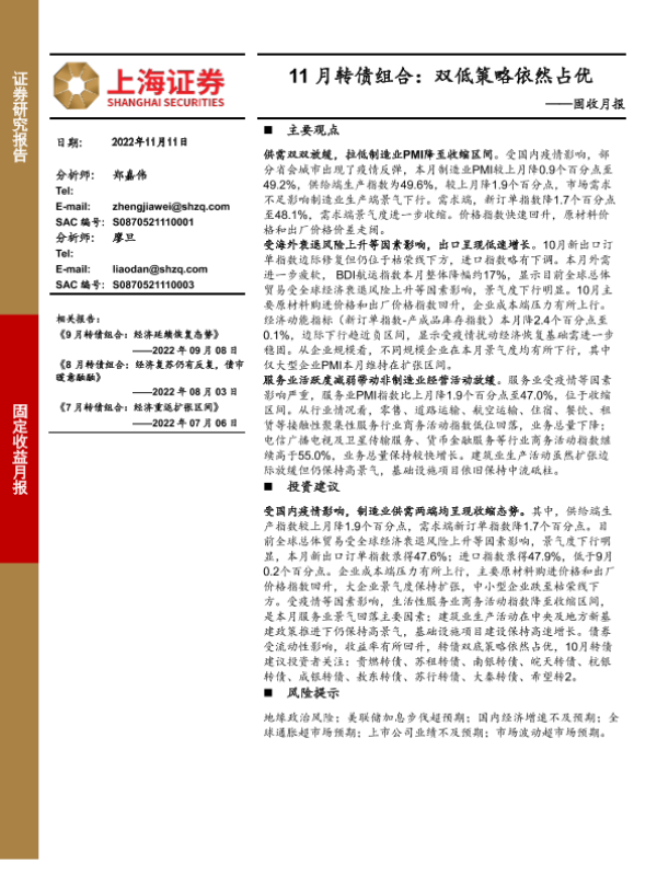 【上海证券】【20221111】11月转债组合:双低策略依然占优-15页