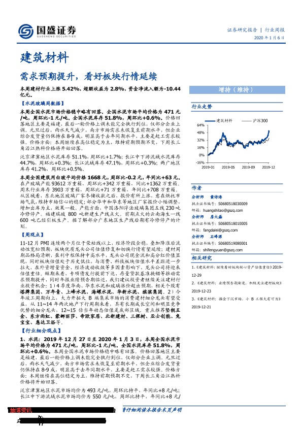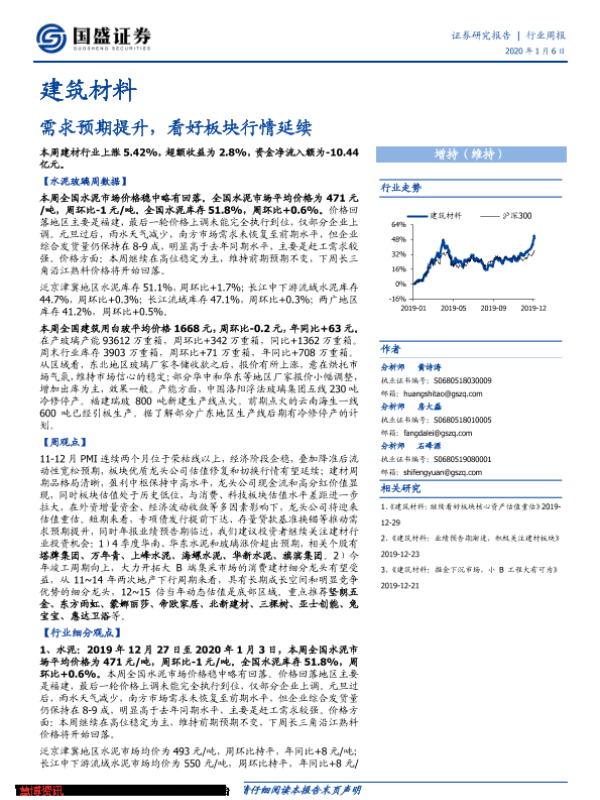 【国盛证券】【20200106】建筑材料行业周报:需求预期提升,看好板块行情延续-24页
