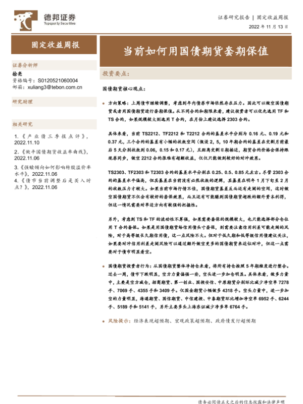 【德邦证券】【20221113】固定收益周报:当前如何用国债期货套期保值-17页