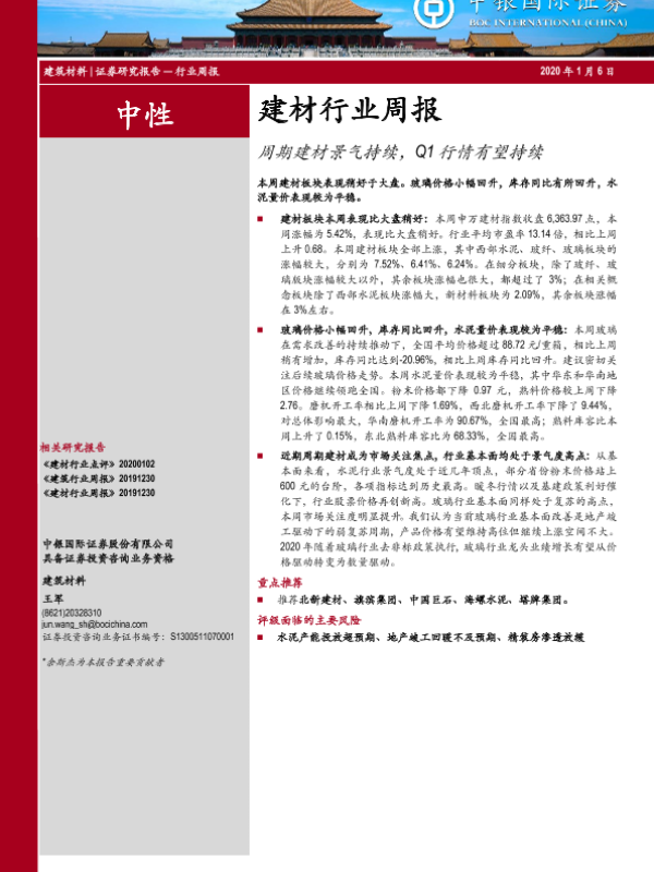 【中银证券】【20200106】建材行业周报:周期建材景气持续,Q1行情有望持续-13页