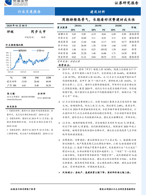 【财信证券】【20200108】建筑材料行业月度报告:周期持续高景气,长期看好消费建材成长性-10页