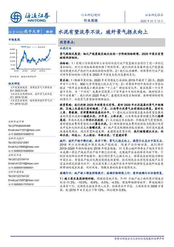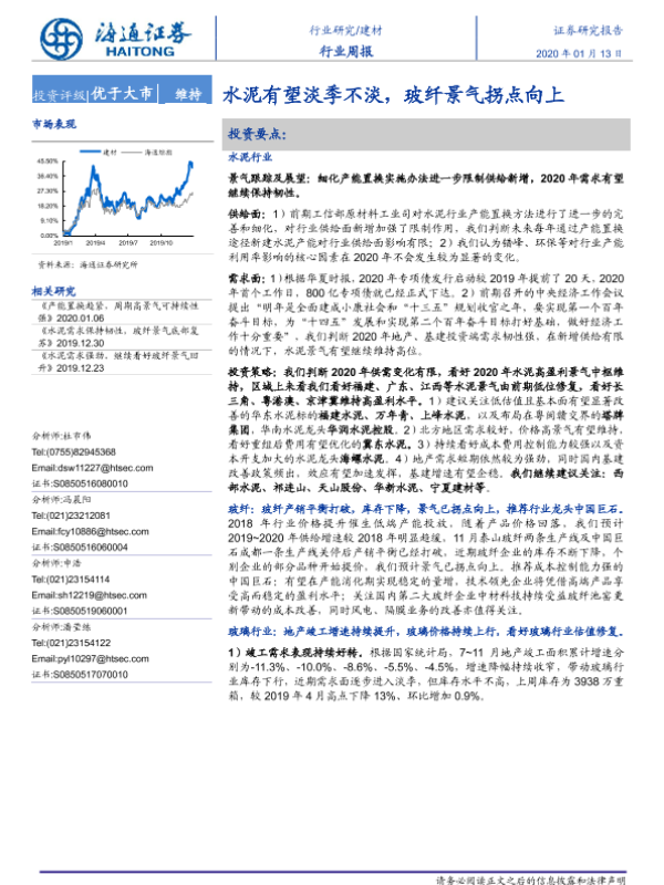 【海通证券】【20200113】建材行业周报:水泥有望淡季不淡,玻纤景气拐点向上-8页