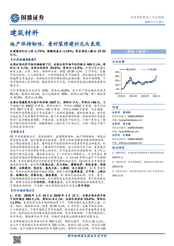 【国盛证券】【20200120】建筑材料行业周报:地产保持韧性,看好装修建材龙头表现-24页