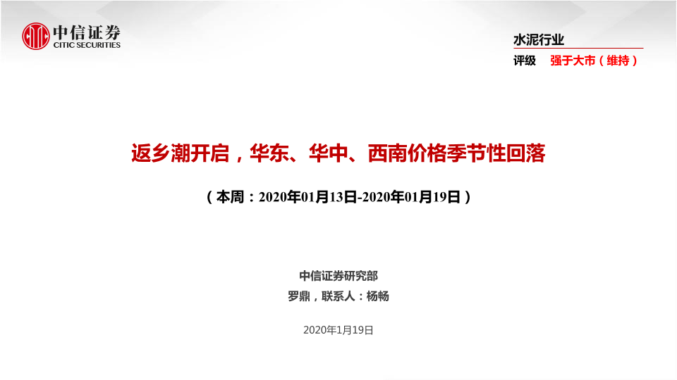【中信证券】【20200119】水泥行业:返乡潮开启,华东、华中、西南价格季节性回落-36页