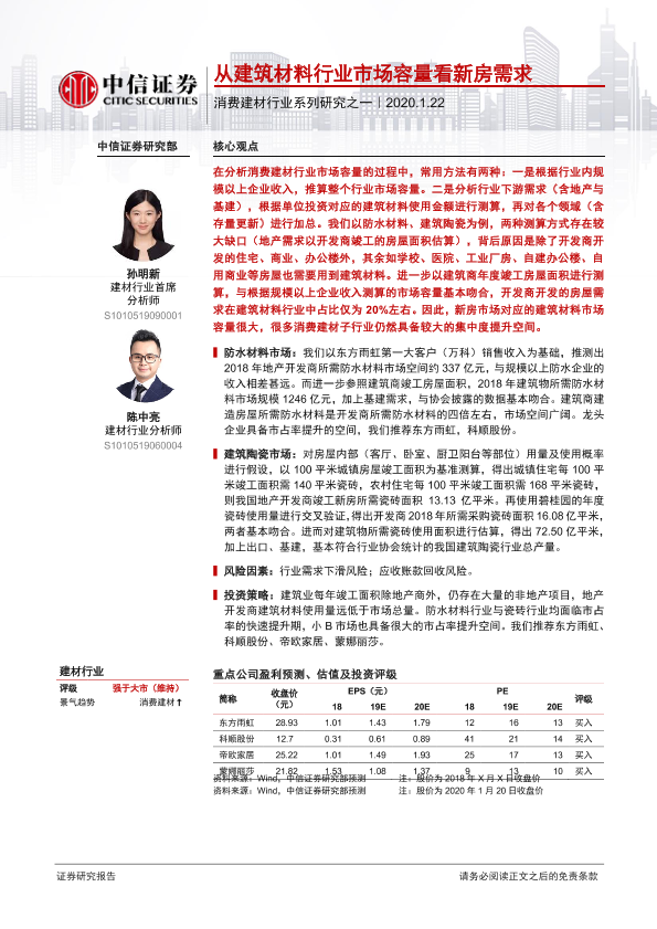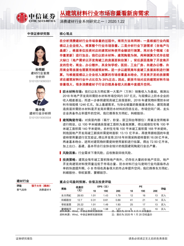 【中信证券】【20200122】从建筑材料行业市场容量看新房需求-16页