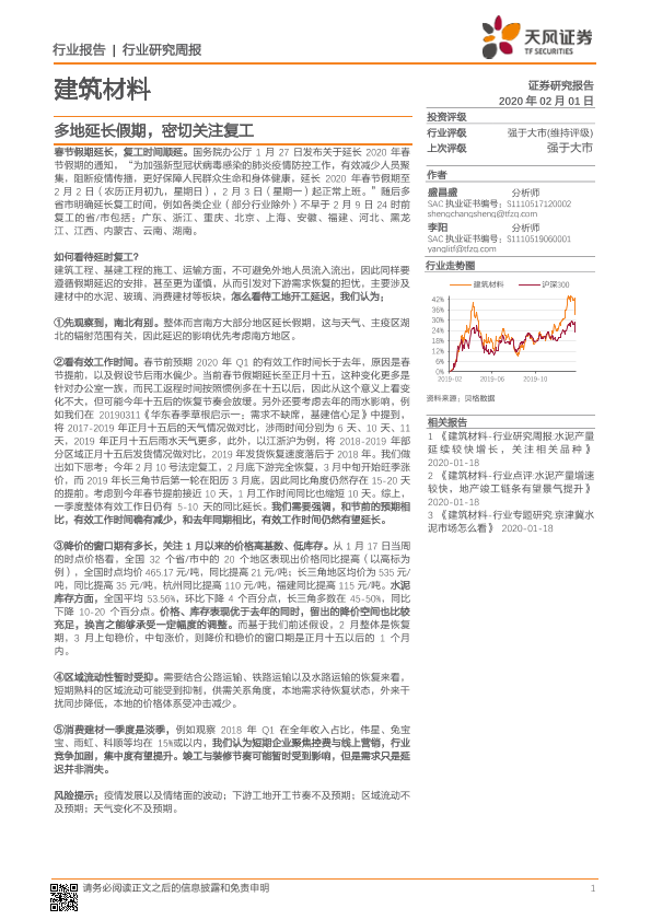 【天风证券】【20200201】建筑材料行业研究周报:多地延长假期,密切关注复工-9页