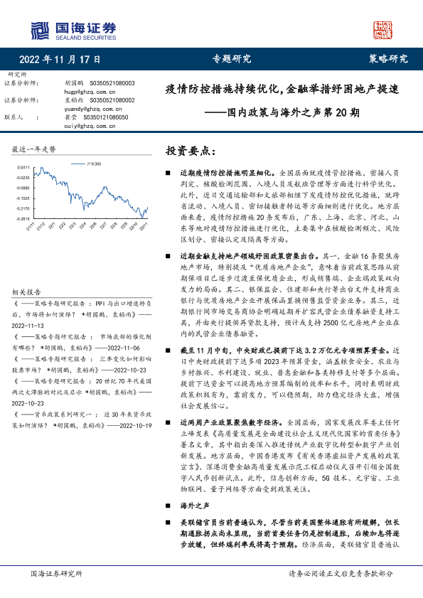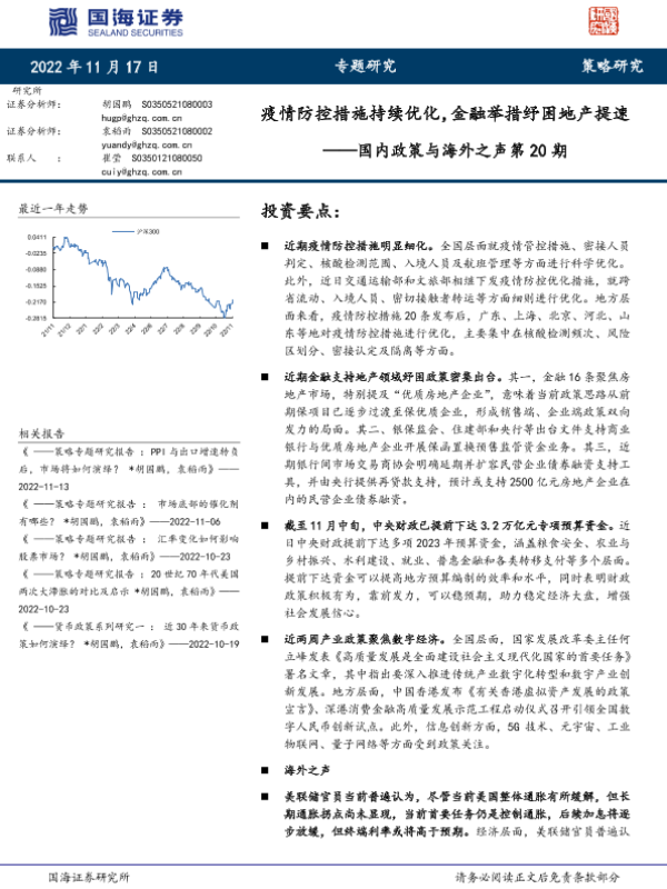 【国海证券】【20221117】国内政策与海外之声第20期:疫情防控措施持续优化,金融举措纾困地产提速-20页