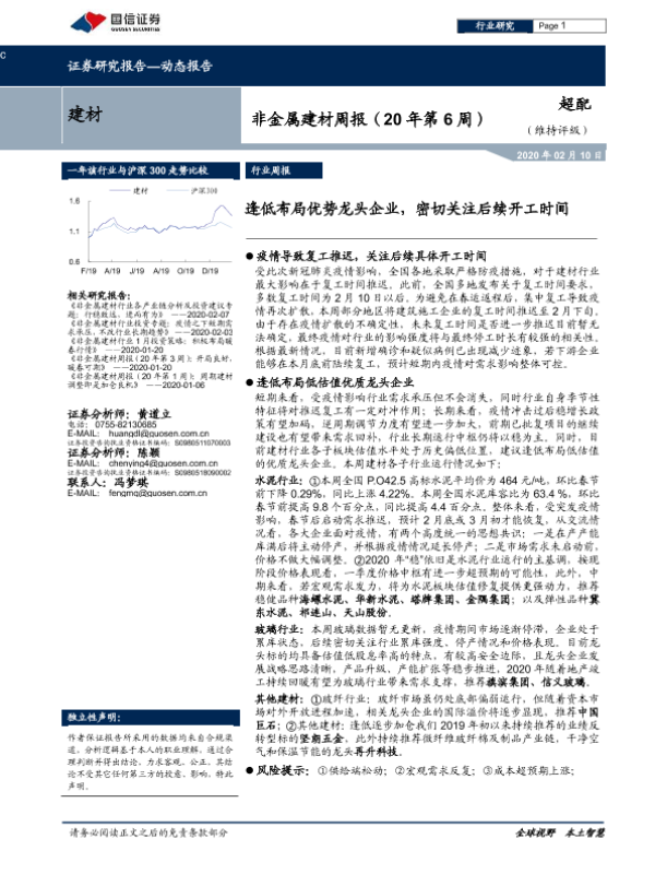 【国信证券】【20200210】非金属建材周报:逢低布局优势龙头企业,密切关注后续开工时间-14页