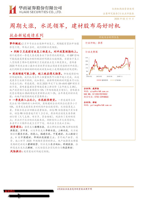 【华西证券】【20200211】抗击新冠疫情系列:周期大涨,水泥领军,建材股布局好时机-4页