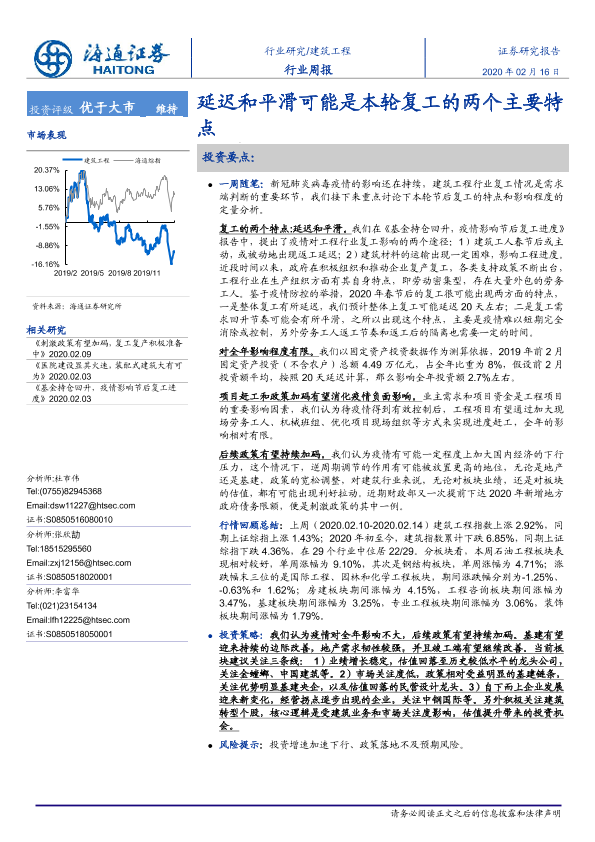 【海通证券】【20200216】建筑工程行业周报:延迟和平滑可能是本轮复工的两个主要特点-6页