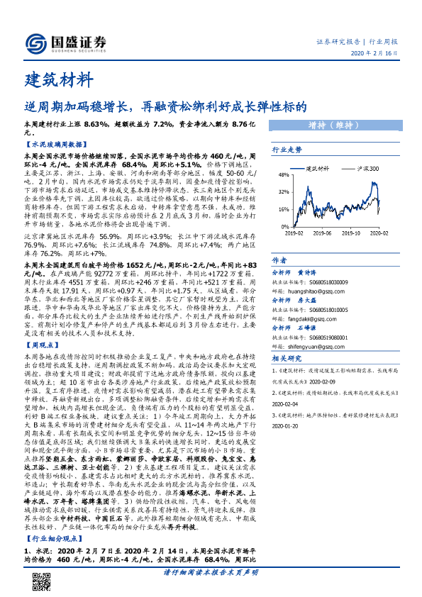 【国盛证券】【20200216】建筑材料行业周报:逆周期加码稳增长,再融资松绑利好成长弹性标的-24页