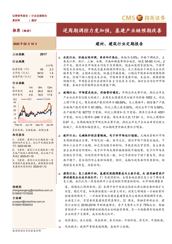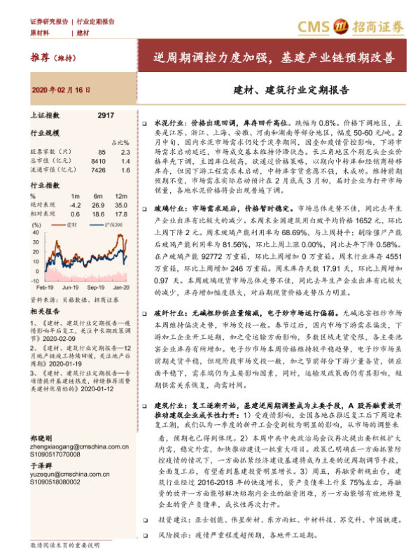 【海通证券】【20200216】建材、建筑行业定期报告:逆周期调控力度加强,基建产业链预期改善-28页