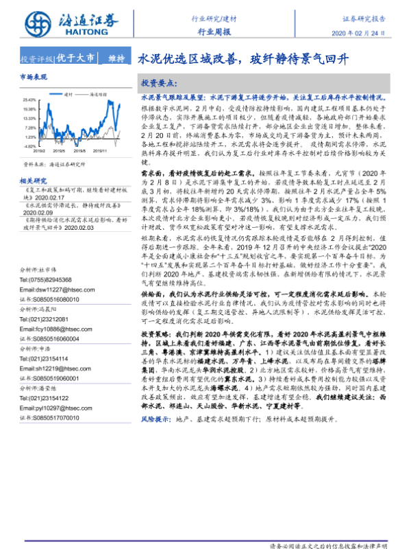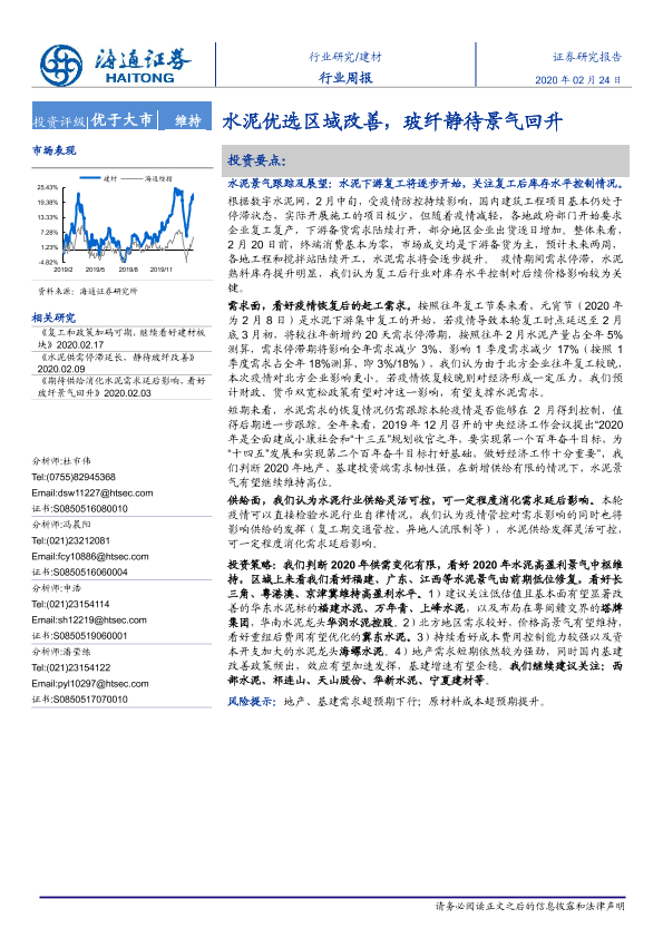 【海通证券】【20200224】建材行业周报:水泥优选区域改善,玻纤静待景气回升-3页