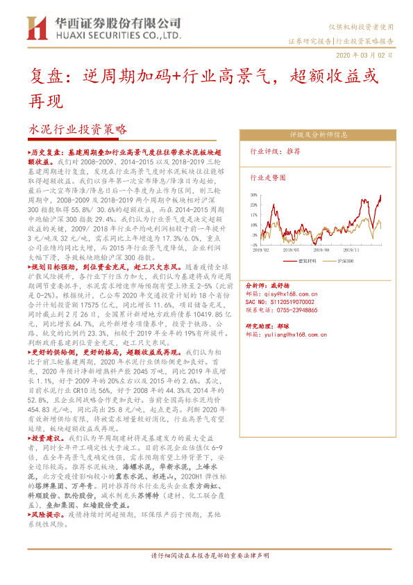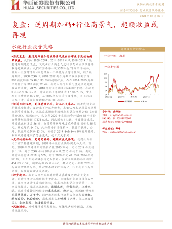 【华西证券】【20200302】水泥行业投资策略:复盘:逆周期加码+行业高景气,超额收益或再现-17页