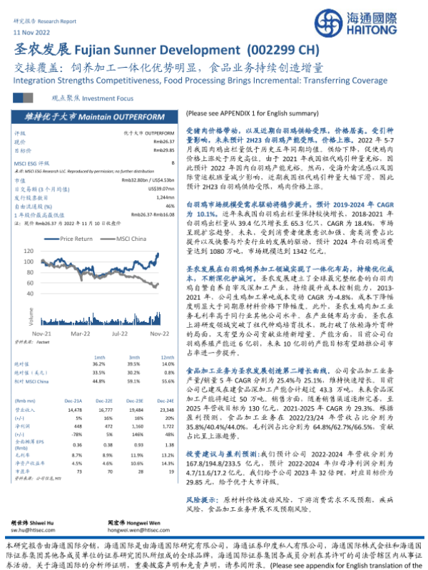 【海通国际】【20221111】圣农发展交接覆盖:饲养加工一体化优势明显,食品业务持续创造增量-24页