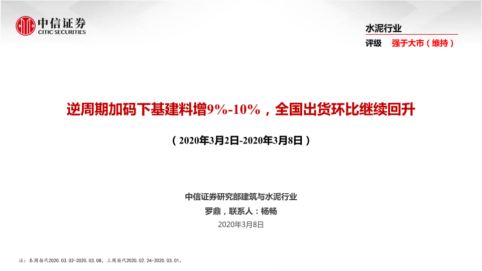【中信证券】【20200308】逆周期加码下基建料增9%-10%,全国出货环比继续回升-37页