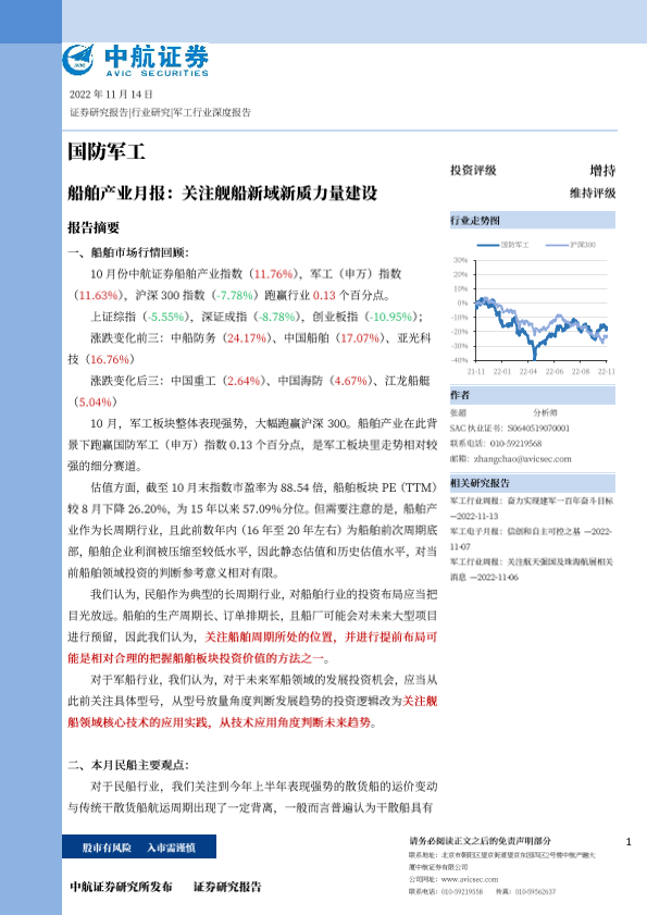 【中航证券】【20221114】国防军工行业船舶产业月报:关注舰船新域新质力量建设-20页