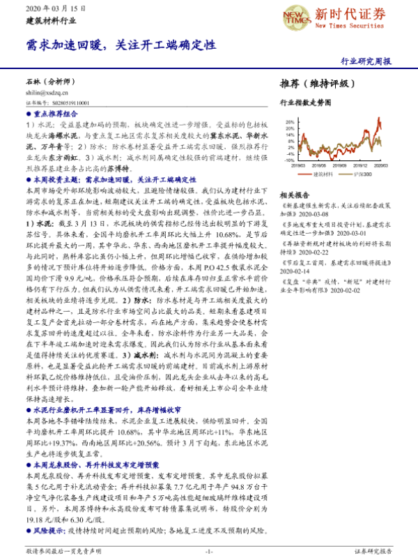 【新时代证券】【20200315】建筑材料行业研究周报:需求加速回暖,关注开工端确定性-17页