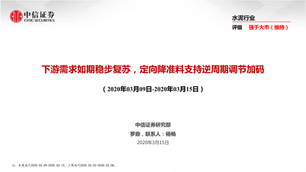 【中信证券】【20200315】水泥行业:下游需求如期稳步复苏,定向降准料支持逆周期调节加码-37页