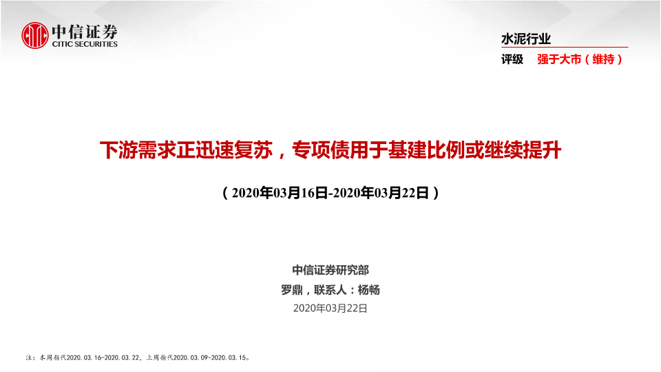 【中信证券】【20200322】水泥行业:下游需求正迅速复苏,专项债用于基建比例或继续提升-39页