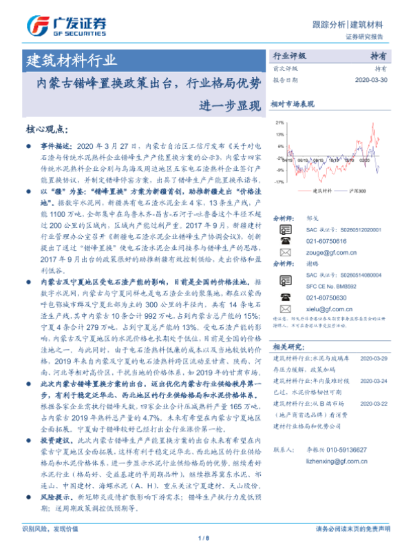 【广发证券】【20200330】建筑材料行业跟踪分析:内蒙古错峰置换政策出台,行业格局优势进一步显现-8页