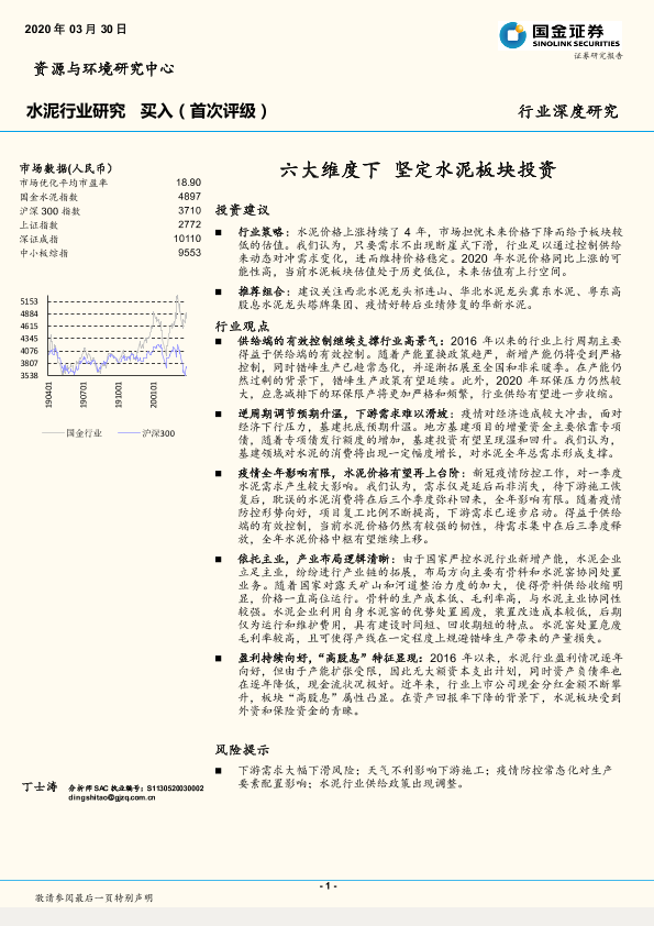 【国金证券】【20200330】水泥行业深度研究:六大维度下坚定水泥板块投资-15页