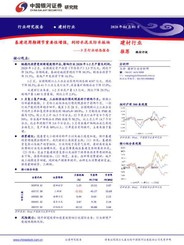 【银河证券】【20200401】3月行业动态报告:基建逆周期调节重要性增强,利好水泥及防水板块-17页