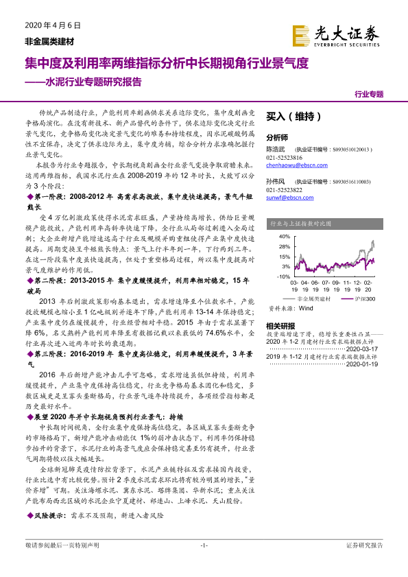 【光大证券】【20200406】水泥行业专题研究报告:集中度及利用率两维指标分析中长期视角行业景气度-10页