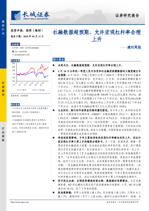 【长城证券】【20200411】建材周报:社融数据超预期,允许宏观杠杆率合理上升-20页