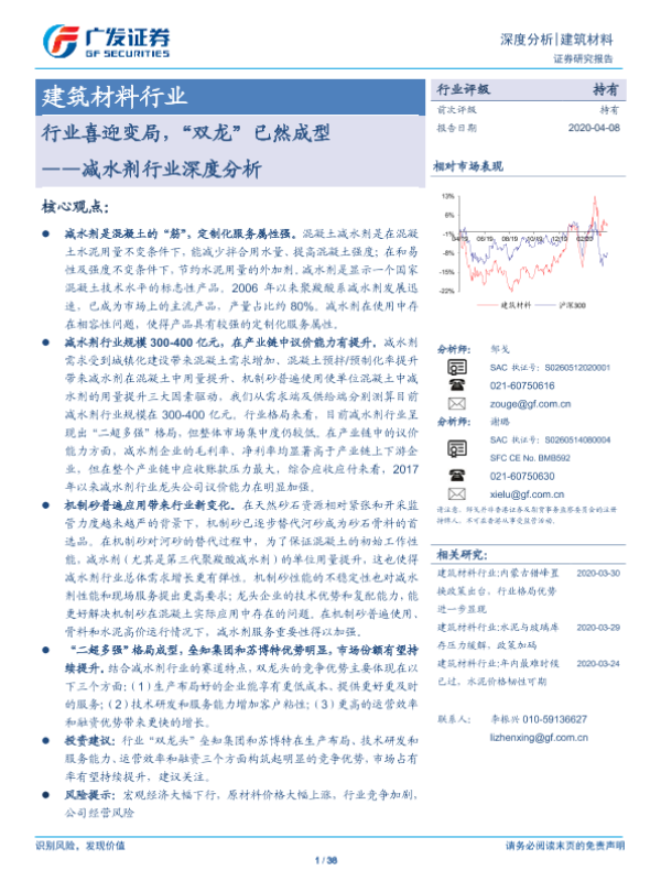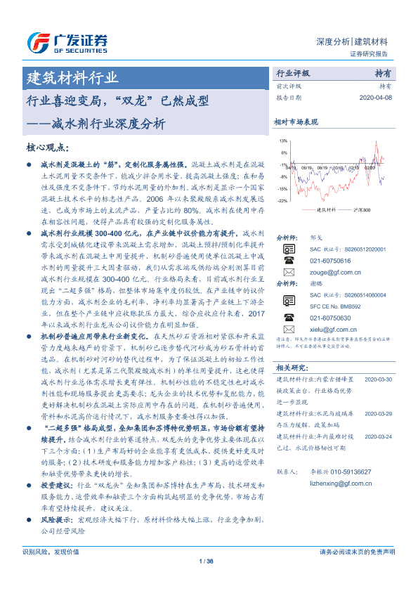 【广发证券】【20200408】减水剂行业深度分析:行业喜迎变局,“双龙”已然成型-38页