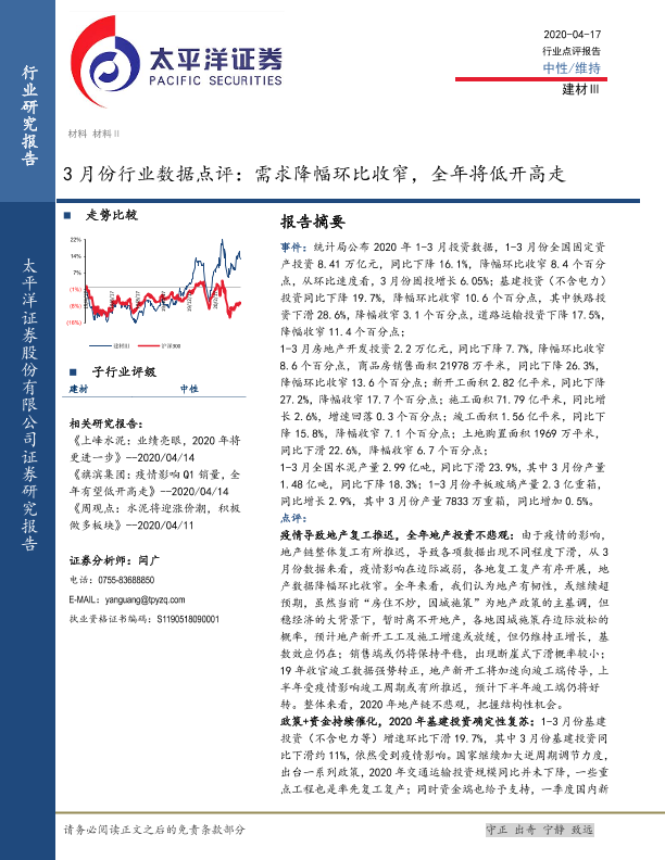【太平洋证券】【20200417】3月份行业数据点评:需求降幅环比收窄,全年将低开高走-5页
