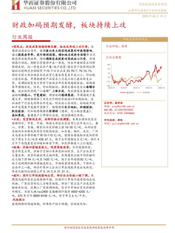 【华西证券】【20200419】建筑材料行业周报:财政加码预期发酵,板块持续上攻-13页